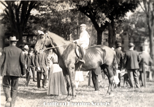 Guilford Fair Parade, man on white horse (Rolf Coll. Guilford Parade Day series)