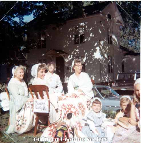 Keeping Society fair float (2nd premium award) on Boston St. south end of Green. L-R …, Helen Kaisen, …, Louise Bishop, …, June Ford. Sept 16, 1966