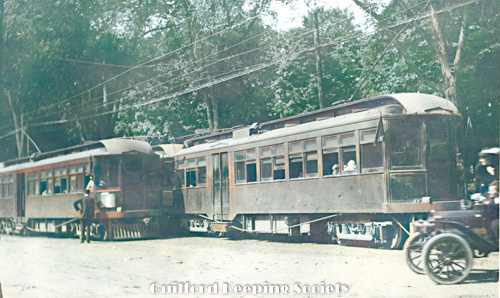 Trolley cars at Guilford Green Fair Day, Sept 24, 1913 (c)