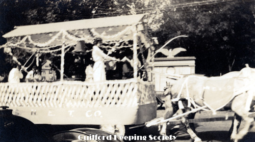 Parade float on the Green. Marie Griswold's parents worked on this Nut Plains neighborhood float in their barn. September 27, 1897