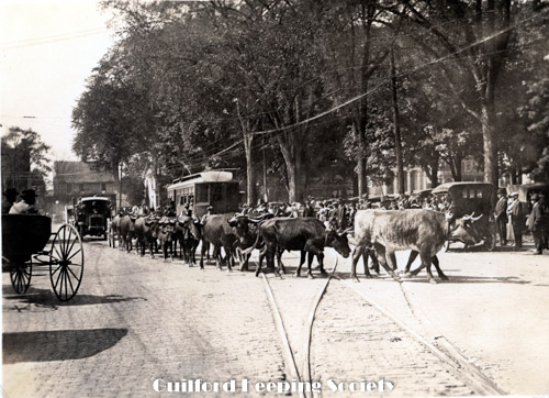 Oxen in parade (Rolf Coll. Guilford Parade Day series)