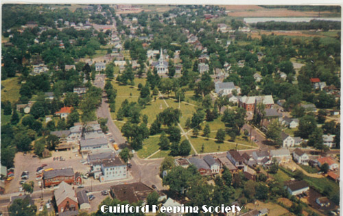 Aerial view of Guilford Green looking toward the north Color postcard Sedge LeBlang NY, NY