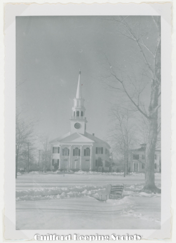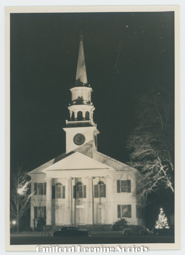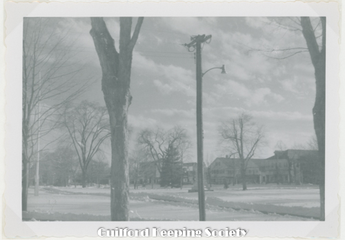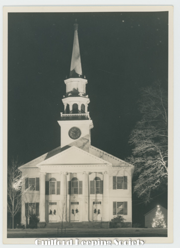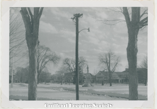 To Aunt Anna & Uncle Jim Merry Christmas ’’Guilford Green Myra & Dr. Monroe Looking across the Green from the southwest corner at the intersection of Boston & Whitfield Sts