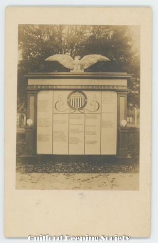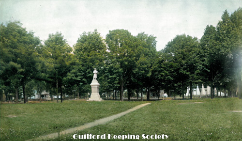 c1895 view of Civil War Statue in the middle of the Guilford Green (colorized)