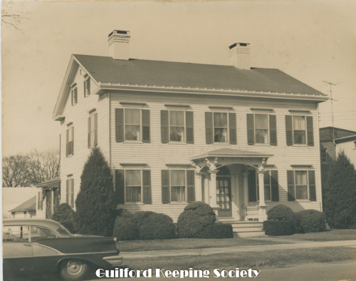 L-R 67 Park St Guilford Free Library 1933 and 55 Park St Jedediah Lathrop House c1810-1822 Oct 1944