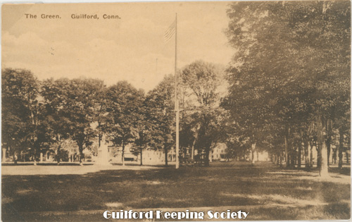 The Green View of flag pole and Civil War statue on the Green looking toward Whitfield St Postcard pub. by Dudley & Beckwith
