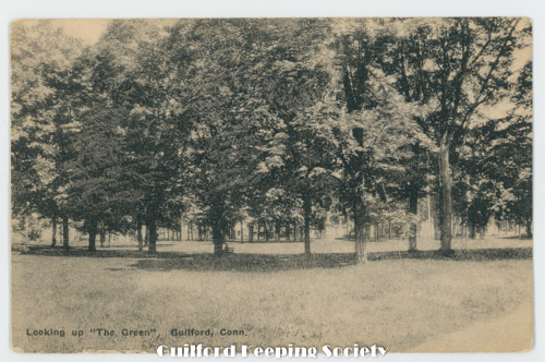 postcard pub. by Dudley & Beckwith looking up the Green view of the trees on the Green