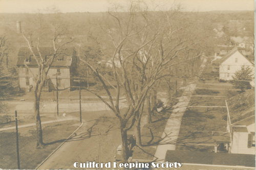 View of intersection of Whitfield and Broad Sts from First Congregational Church steeple, the northeast corner of the Green