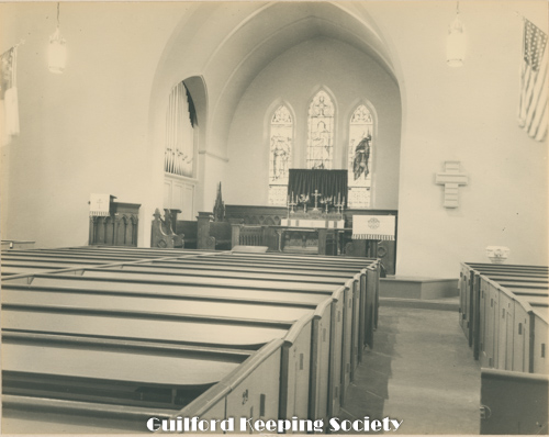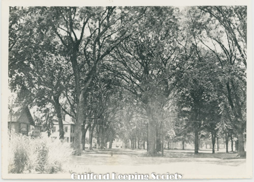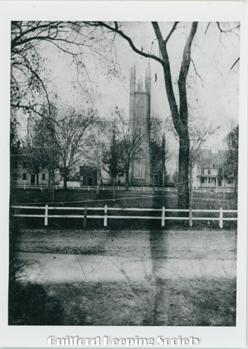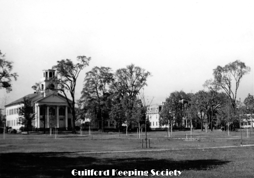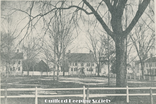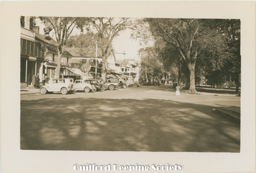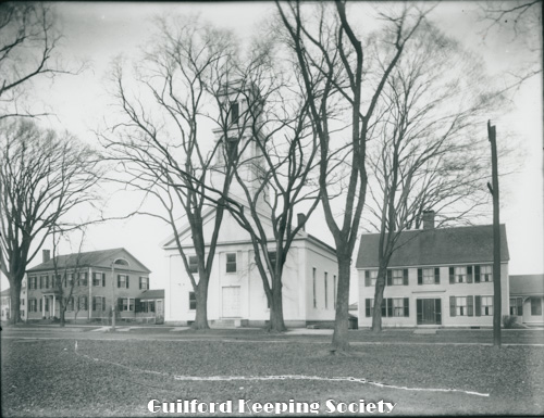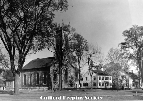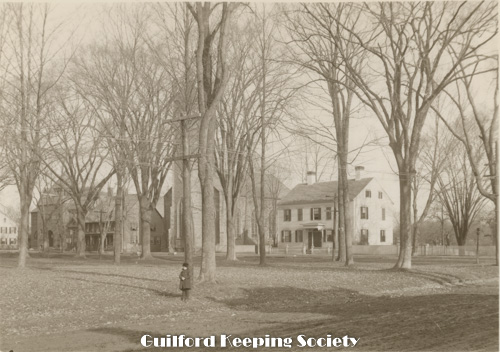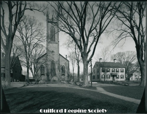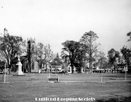 Guilford Green viewed from the west, on the left Episcopal Church 17 Park St, on right Dr. Jared Redfield 11 Park St, Dr. John Redfield 1 Park St, c.1940, Mad Hist Soc 11.10.2008