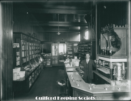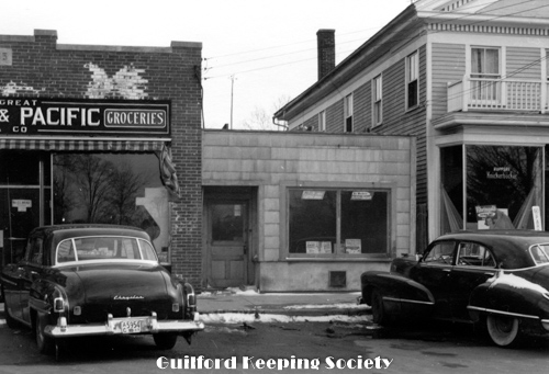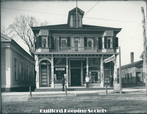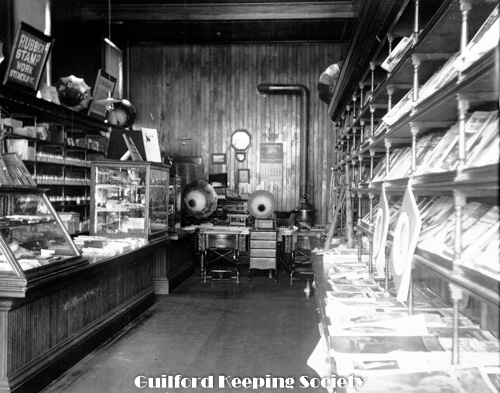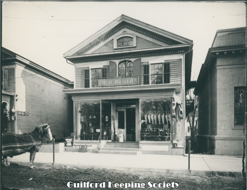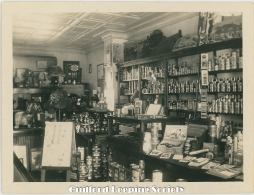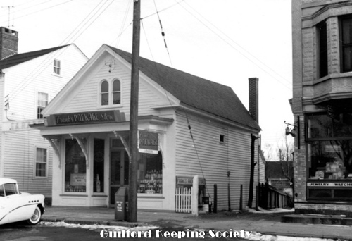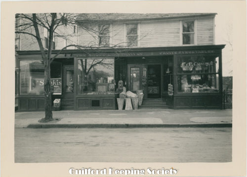Notes from David Dudley’s album George Walter's Feed Store on Library corner c1910 Stood on site of Guilford Free Library 67 Park St Date c1910