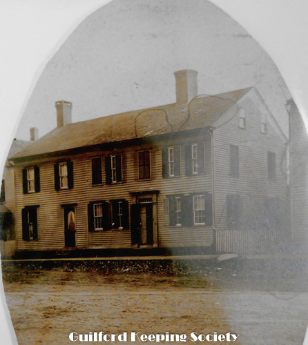 John Redfield house 1 Park St from notes by David Dudley while talking to Shelton Dudley Thomas Landon house (now Guilford Savings Bank) about 1915 Date c1915