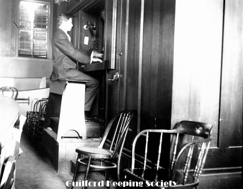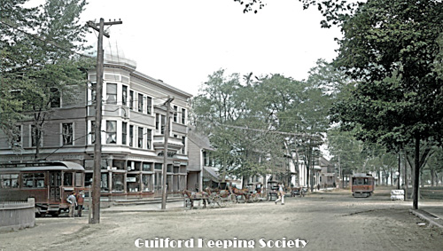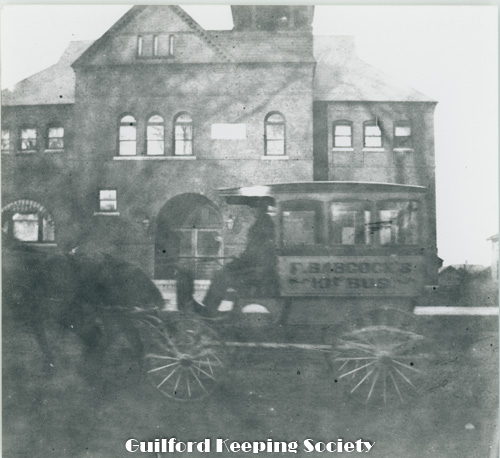 Guilford Town Hall 31 Park St and Frank Babcock’s 10cent bus Date c1898
