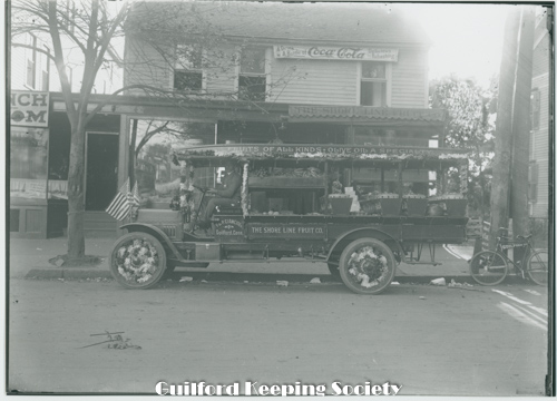 Shoreline Fruit Co. and delivery truck 81 Whitfield St Owned by F & P Cianciola. Decorated for Guilford Fair parade Date c1920