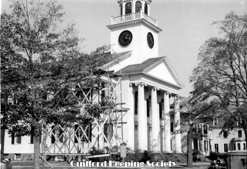 First Congregational Church with scaffolding 110 Broad St after 1938 hurricane, Mad Hist Soc 11.10.2008
