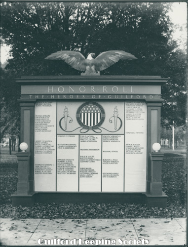 World War I honor roll at the south end of the Green facing Boston St Replaced by a stone boulder Date 1918