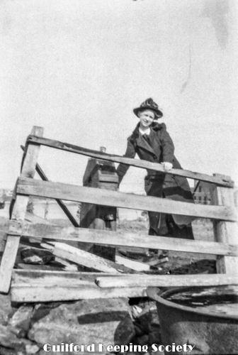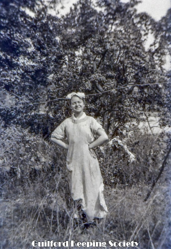 Kitty Harrison, before corner of house (as in photo #117), clothes on clothesline.