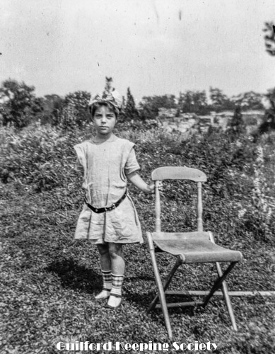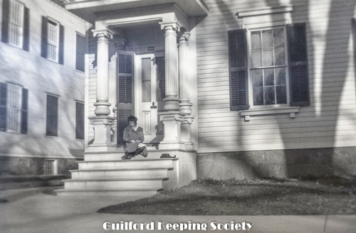 Girl on steps of First Congregational Church Rectory, between 110 and 122 Broad Street, moved 1964 to Conway Drive.