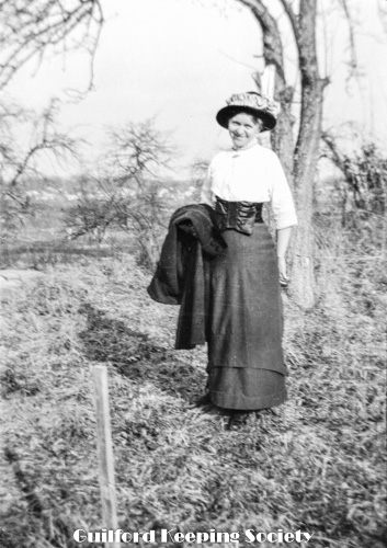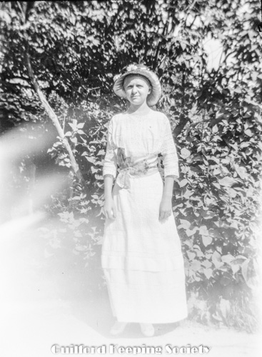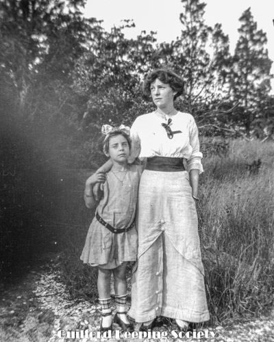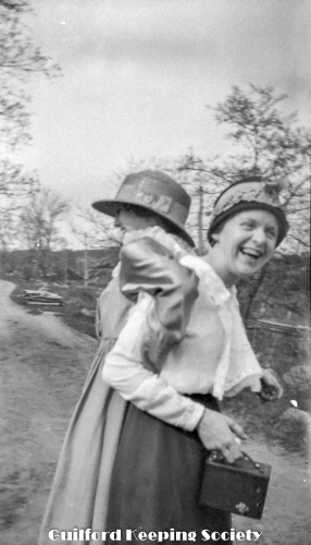 Kitty’s woman friend (#1 and #6) probably Memorial Day, before pillar to Methodist Church, Whitfield St on Green.