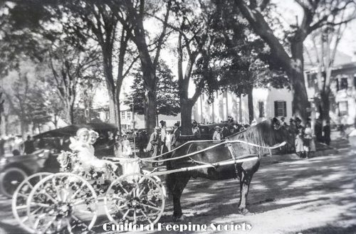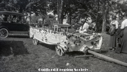 Guilford Fair Parade. Letters “RA” recognizable on float carriage.
