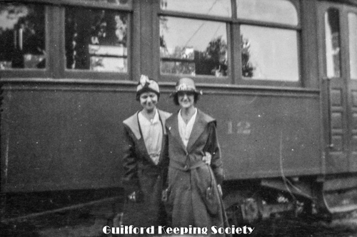 Kitty and woman friend (#6) standing before a railroad passenger car, possibly Sachem’s Head Railroad Station.