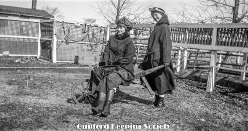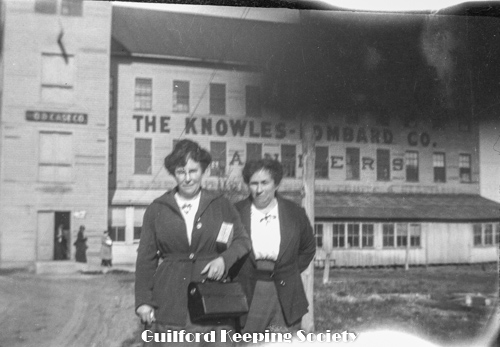 Knowles-Lombard Canning Factory (on Driveway), two women, (#31 with lunchbox and #12), before building.
