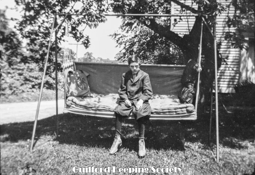 Howard Leonard Jacobs on lawn swing at Harrison’s house on Water Street.