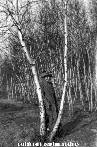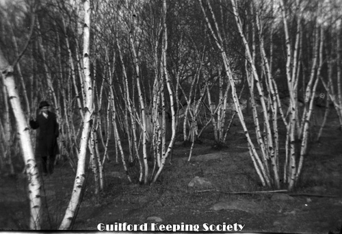 Woman friend (#3) in a stand of birch trees.