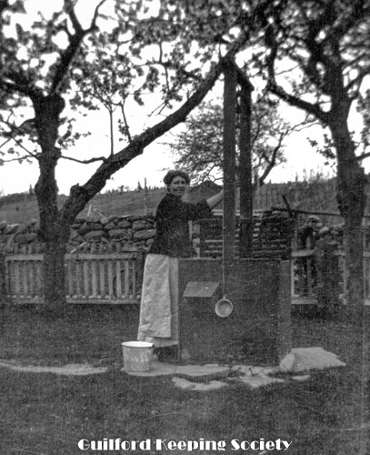 Woman (#42), tall, dark hair, round face, fetching water from well with ladle. See #320, 325, 339, etc.