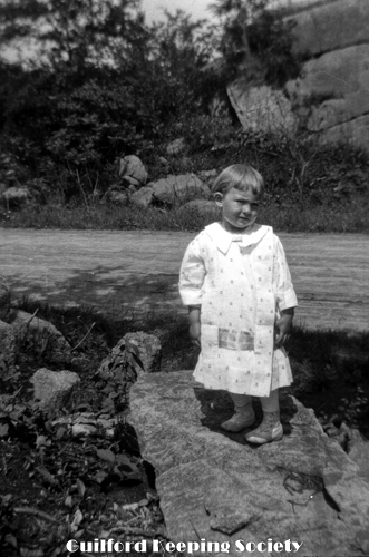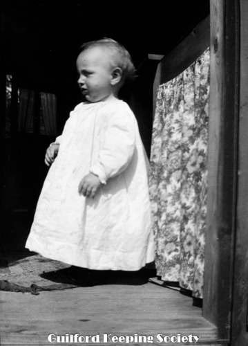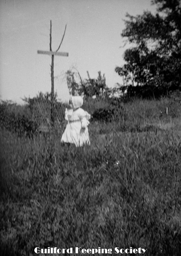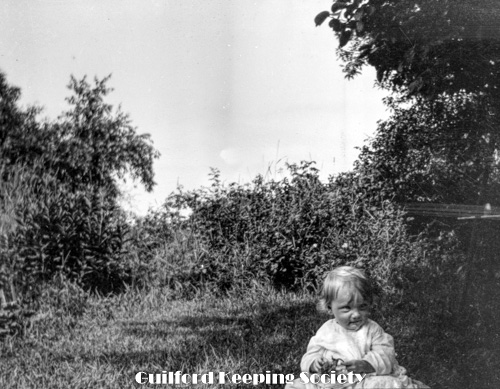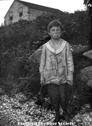 Young boy with grimace, apparently holding something. Note crushed shells on ground, house upon the hill. Boy is possibly Minnie Josie Scranton Nann’s son #94, 95, 220, 560 (CCC).