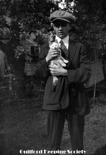 Harold Fowler with white kitten. At the Harrison house. Duplicate.