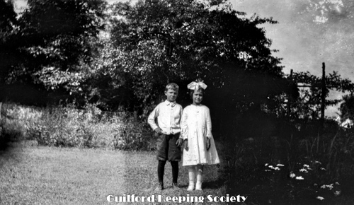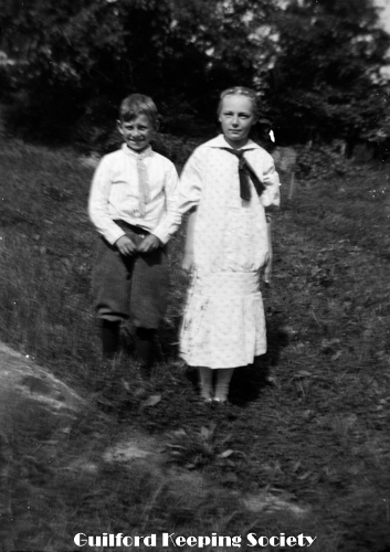 Young boy and girl in yard, possibly siblings. Maybe the son (possibly also in #550) and daughter (#564 right) of Minnie Josie Scranton Nann (CCC).