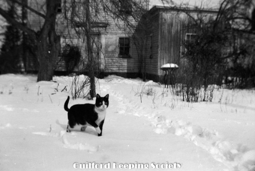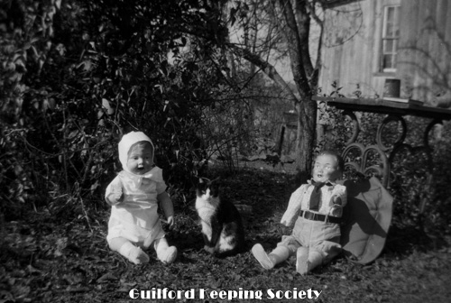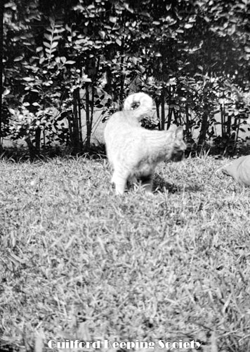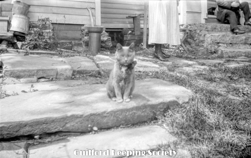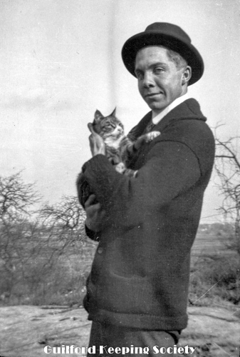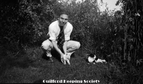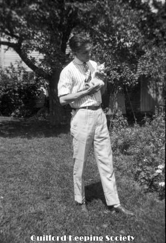 John Hubbard with white kitten at the Harrison house. See also #506.