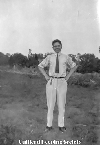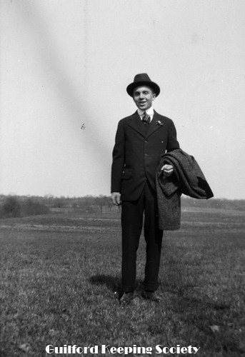 Harold Fowler all dressed up, flower in lapel, open field. See also #540, 541.