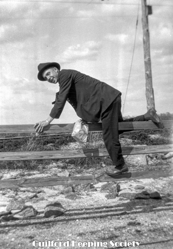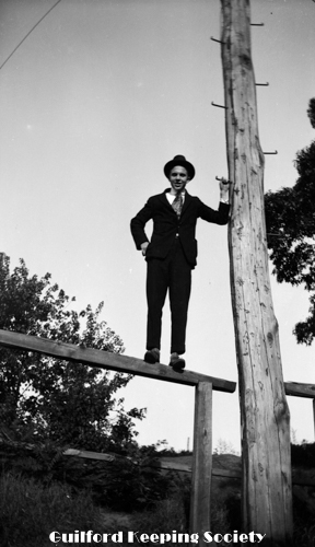 Harold Fowler standing on rail fence near telephone pole. See also #73, 74.