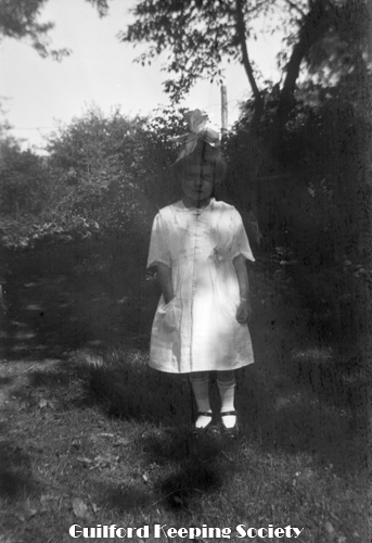 Young girl with olive skin, large hair bow, white outfit, standing near railing, probably on Water St Considered the daughter of KFH’s woman friend (#1) (CCC).
