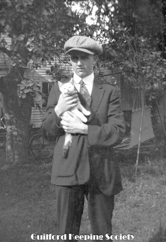 John Hubbard holding white kitten, at the Harrison house. See also #516.