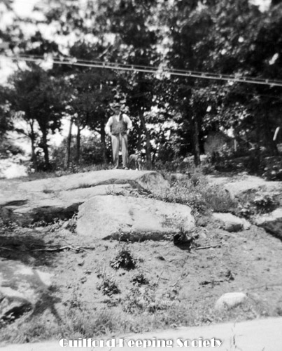 Young man (possibly a GHSB member) in checkered cap, in woods with dog. See also #497, 499, 504.