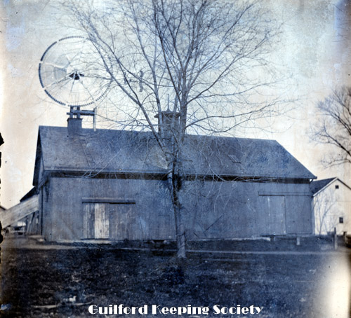 Whitfield house barn with windmill before it was moved to Rollin Woodruff house property at 268 Whitfield St in 1905. 248 Old Whitfield St,