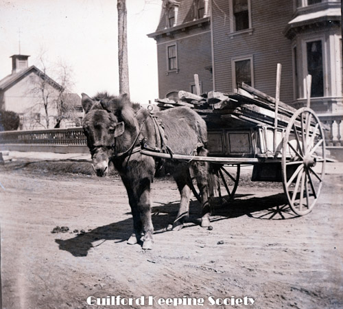 Capt. Oliver N. Brooks’ donkey in front of Fred Spencer house. E.C. Bishop house Broad St Broad St 122