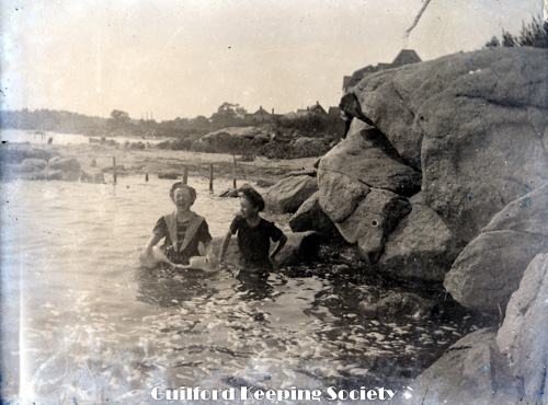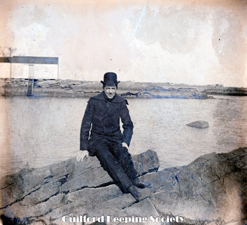 Unidentified man on rocks at Guilford Point Guilford Point, at the end of Seaside Ave. Seaside Ave.