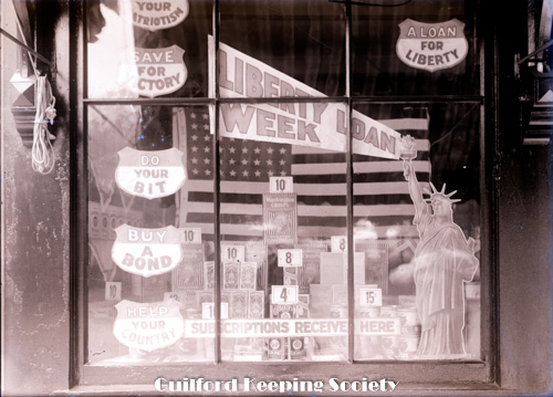Liberty loan signs in store window Whitfield St, possibly Whitfield St c1918