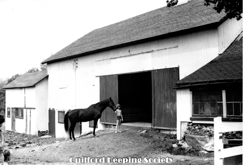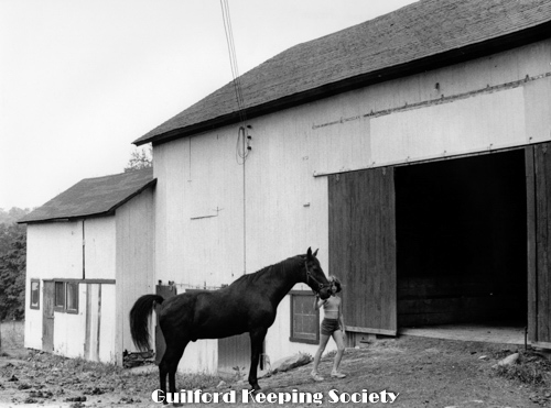 Barn at Medad Holcomb House (b1805) 2814 Long Hill Road, North Guilford, girl and horse C1970 BETTY DUNN