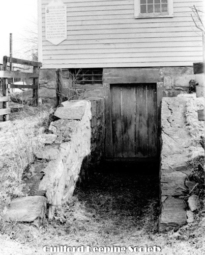 Grinding stone from Guilford’s 18th Century grist mill placed by Danforth Nettleton to mark the west boundary at 54 Water Street after he designed and built the new mill in 1854. Now inside new boundary 1968 WALTER NETTLETON Donated by Suzanne Dudley (Mrs. David) September 26, 2017