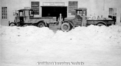 Sachem’s Head Canning Co. just west of 11 Water St., L-R Arthur Jenks, Muriel,…, Reginald Hill, Fred H. Rolf’s truck Jan 1923 (Rolf Coll) January 1923