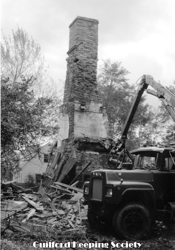Demolition of Hooker Bartlett House at 199 Whitfield St. 1990. House razed Oct. 27, 1990, Chimney stack demolished Oct 28, 1990, October 27, 1990 PHOTO BY JOEL HELANDER