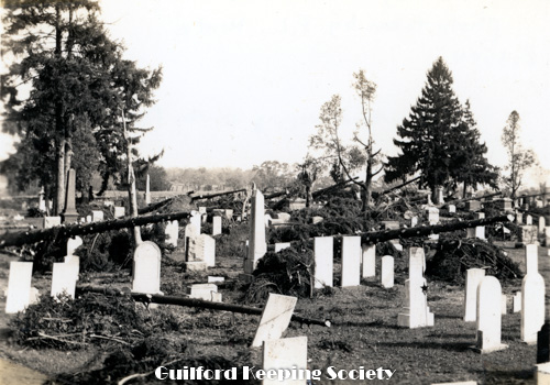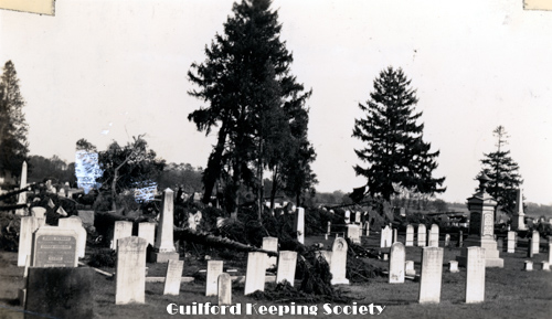 East Cemetery taken from in front of Fitz Greene Halleck monument Taken after the hurricane. Alderbrook Cemetery on Boston Street. Oct 1, 1938 ALBERT D. HOTCHKISS.