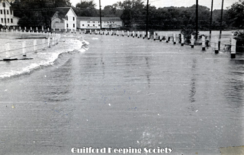 Jones Bridge under water Taken during the hurricane. Route 146 facing west at the bridge over the West River. Sept 21, 1938 BEATRICE OLVER.