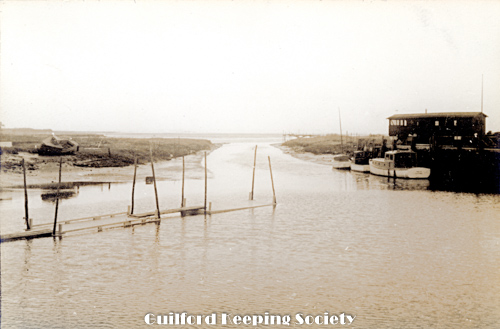 Sluice Looking south out Guilford Harbor from near the sluice. The building on the right is on the left in P3562 DONLEY LUKENS