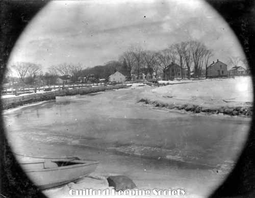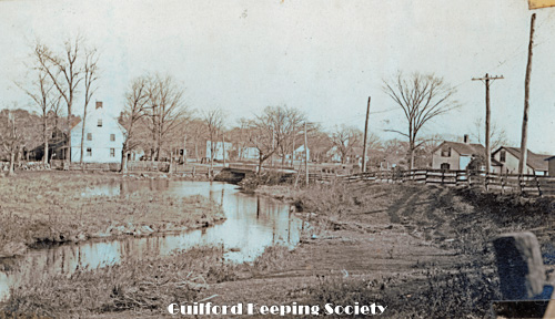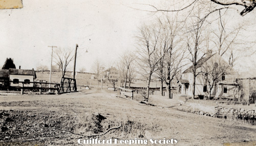 York St in front of Robinson place Home of Clarissa Chittenden at right foreground. Frederick Chittenden beyond Looking west to the bridge over West River. Boston Post Rd looing west on far right # #1153 Boston Post Rd Nathan Chittenden.
