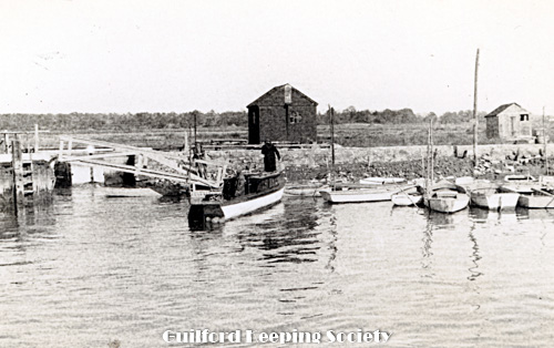 Marina Guilford docks At the southern end of Whitfield Street. The building on the left is presently (1976) the Captain’s Table restaurant. It was a fish market when this picture was taken. DONLEY LUKENS